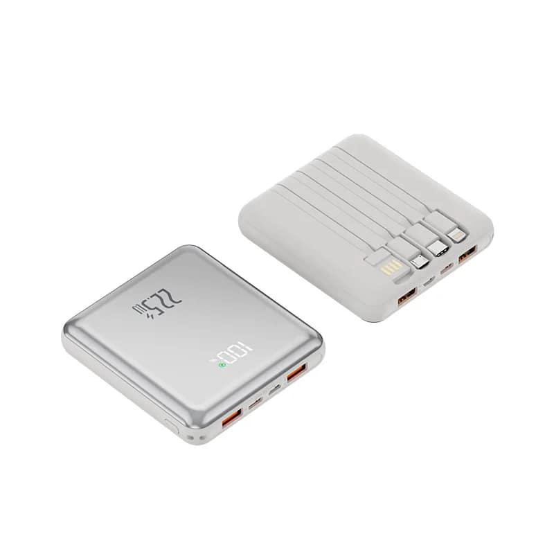Introducing the Ultra-Thin Mini Power Bank with Built-in Cable, where sophisticated design meets ultimate practicality. This device redefines portable power by combining a remarkably slim form factor with the game-changing convenience of integrated cables. It’s the perfect fusion of style, substantial capacity, and smart functionality, crafted for the discerning Cameroonian who values both aesthetics and uninterrupted connectivity.