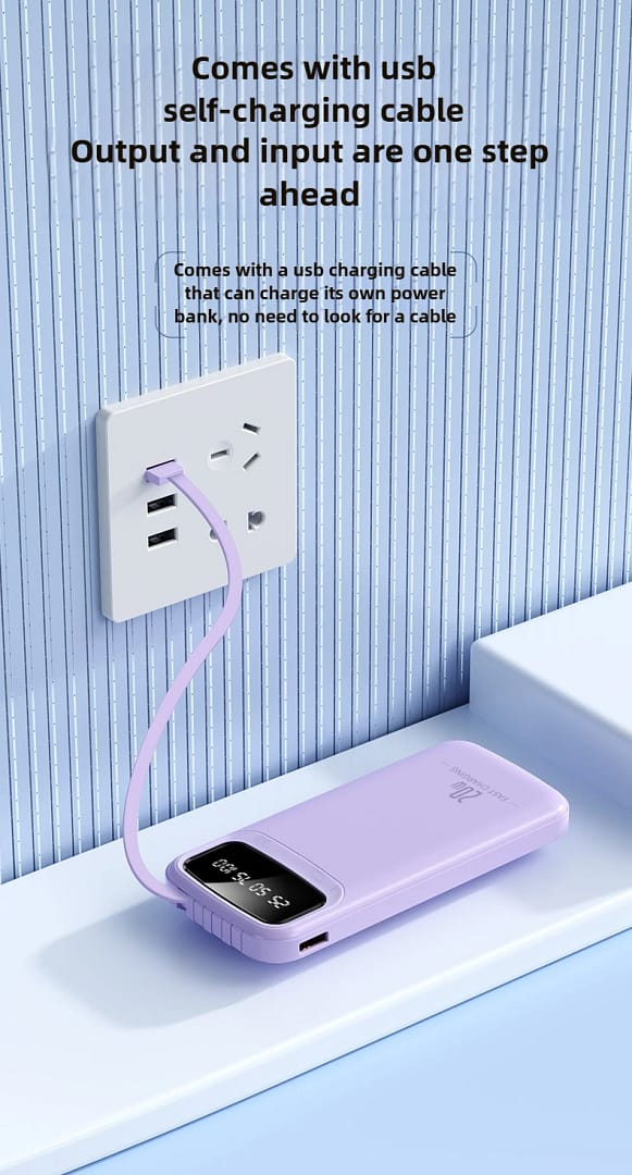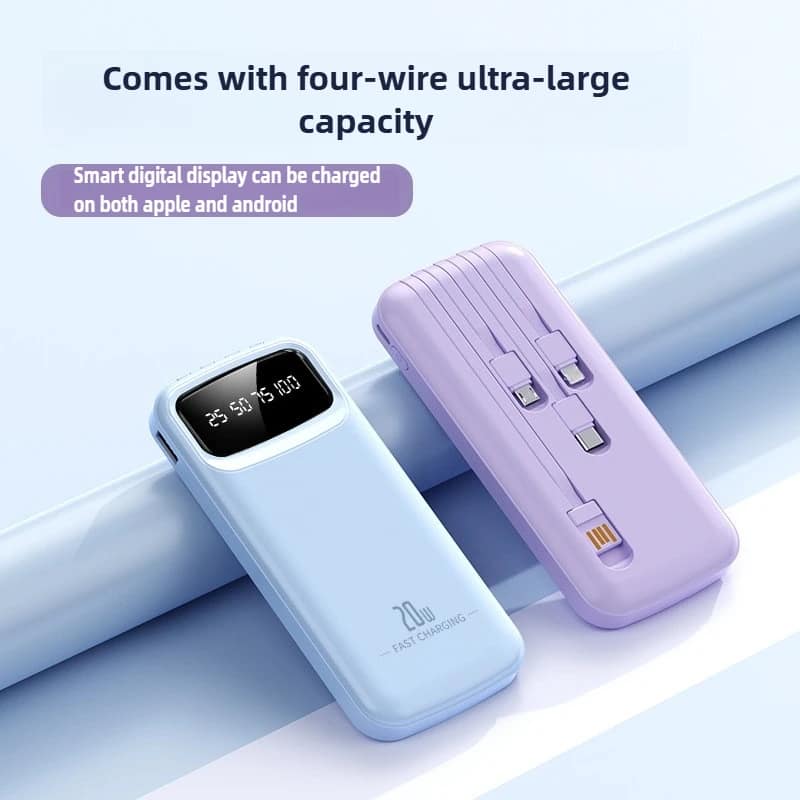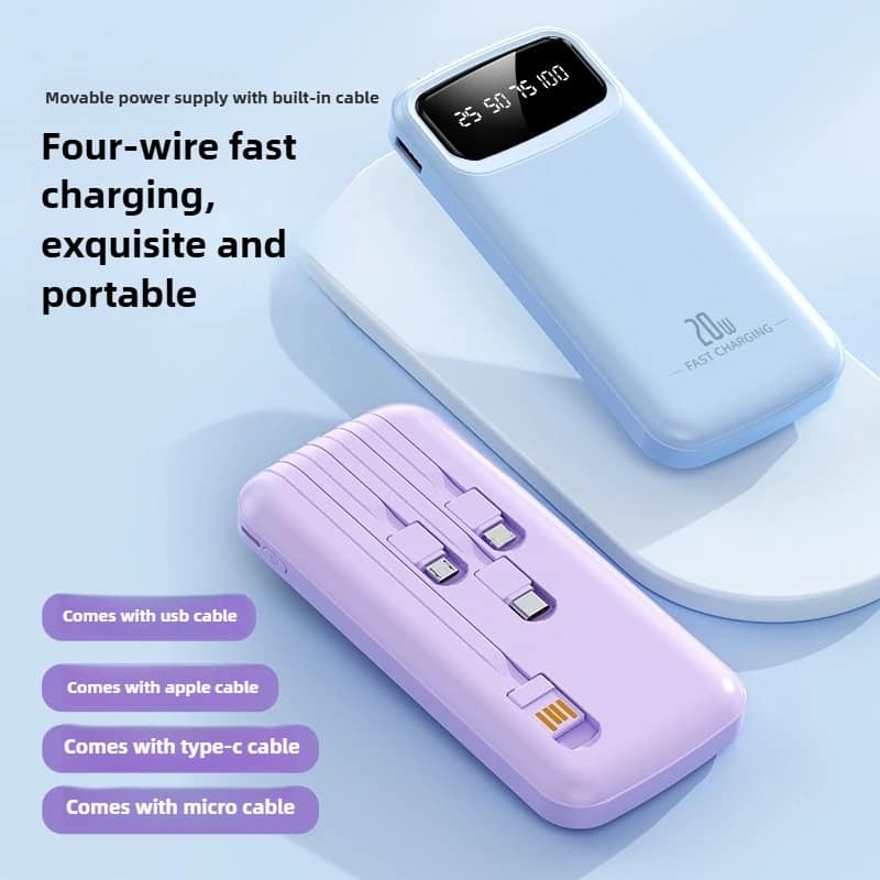 10000mAh/20000mAh Super Fast Charging Portable Power Bank with Built in Cables